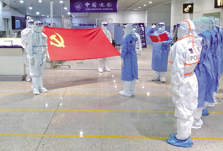 來自奧地利維也納的CA824次航班在呼和浩特白塔國際機場降落。備勤室內(nèi),參加首都機場分流國際航班入境邊防檢查任務(wù)的呼和浩特邊檢站民警嚴(yán)陣以待。 ...